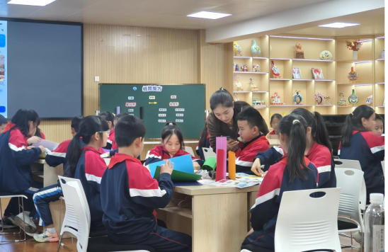 在石码头小学的研学现场,刘雨欣与龙明珠老师就《鸟的天堂》展开同课异构:两位老师分别运用AI语音评测实现朗读精准指导与智能平台组织小组探究,展现了技术赋能下教学模式的多样性。蔡文英与杨莉群老师的美术课《神奇纸筒创想记》分别侧重AI生成设计灵感与聚焦传统工艺与数字技术的融合创新。在益阳市第六中学初中部,徐君妍与宋梦龙老师的数学课《三角形的三边关系》分别从动态几何演示和实际问题求解两个维度,让抽象定理变得直观易懂;罗焕霞与曾谷泉老师的物理课《电阻》则通过AI模拟实验和数据分析,共同构建了沉浸式的科学探究场域。八位教师的课例共同勾勒出AI赋能课堂的丰富样态,为学员们提供了可借鉴的实践范式。在随后的成果展示环节,各小组研发的《AI赋能口算训练系统》《古诗词智能鉴赏助手》等作品,标志着学员们已完成从技术使用者到课程设计者的深刻转型。