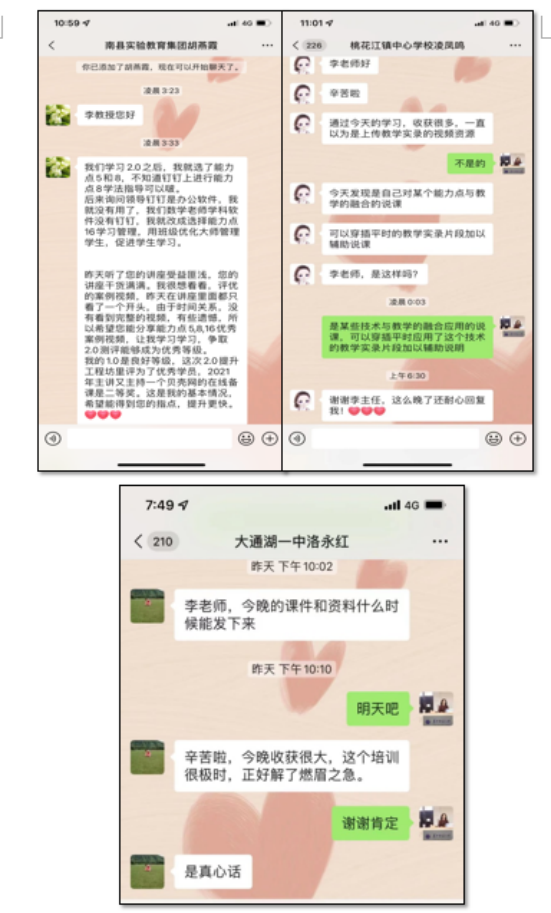 会后,参加培训的老师们纷纷表示,此次培训针对性、操作性、实用性都很强,不但为广大教师搭建了学习交流的平台,而且提升了考核实操能力。八十多位教师会后主动添加李主任微信,如南县实验学校教育集团的胡燕霞老师听完培训后,便难掩激动,凌晨三点仍在给李主任发微信,请求进一步指导。大通湖一中的骆永红老师说:“今晚收获很大,这个培训很及时,正好解了燃眉之急!”