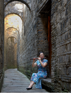 活动伊始,学员们分组前往古街、古巷与古院进行采风。月明楼前晨练的太极团队成为大家首选的拍摄题材。班上好几位女学员更自备多套服装与道具,不惧炎热,根据场景不断更换造型,主动担任环境人像模特。她们身着典雅旗袍,为古朴的建筑注入了灵动生机。