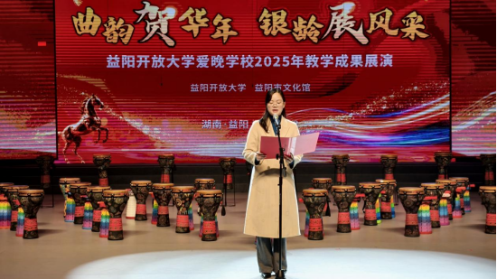 12月30日下午,益阳开放大学“爱晚学校”成果教学展演活动在益阳市文化馆举行。本次汇演以“曲韵贺华年,银龄展风采”为主题,以“让学习成为一种生活方式”理念为主线,学员们欢聚一堂,用精彩的表演,集中展现了一学期的学习成果与积极向上的银龄风采。