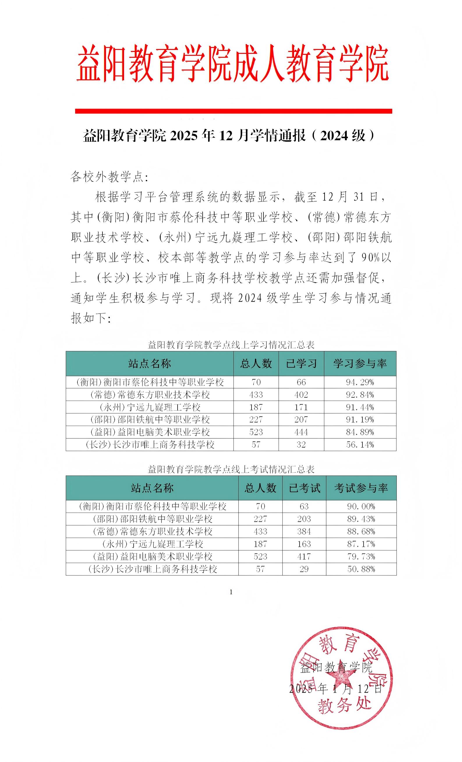 益阳教育学院2025年12月学情通报(2024级)
