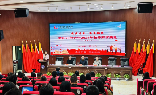 11月21日,益阳开放大学2024年秋季学期开放教育新生开学典礼在学校多功能报告厅隆重举行。学校开放教育学院全体教师,专业责任老师和课程辅导老师及学校相关部门老师参加了此次开学典礼。学校党委委员、纪委书记陈献忠,党委委员、副校长刘燕,开放教育学院主任易卓等出席了典礼。