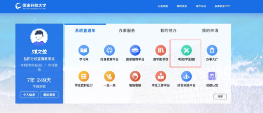 第一步:学生登录一网一平台https://menhu.pt.ouchn.cn/,再点击“考试(学生端)”;