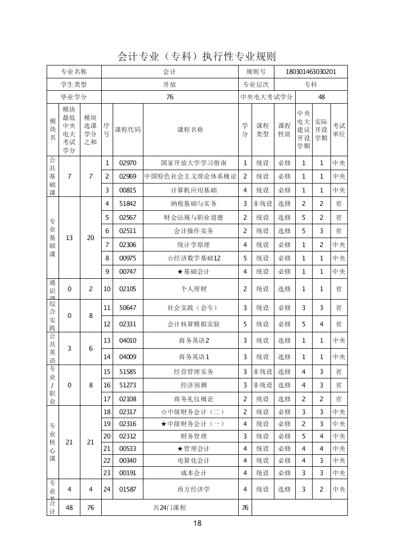 2018春益阳广播电视大学执行性专业规则