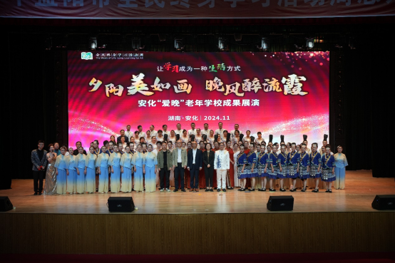 在活动现场,安化“爱晚”老年学校教学成果展演在舞蹈《威风锣鼓》中拉开序幕,合唱《茉莉花》、书法与葫芦丝重奏表演《欢乐颂》、古风走秀表演《梅山茶韵》、戏曲《花鼓戏联唱》等精彩节目轮番上演,学员们以真挚的情感和精湛的技艺,充分展示了安化县新时代老年人的风采,赢得现场观众的阵阵掌声和喝彩。