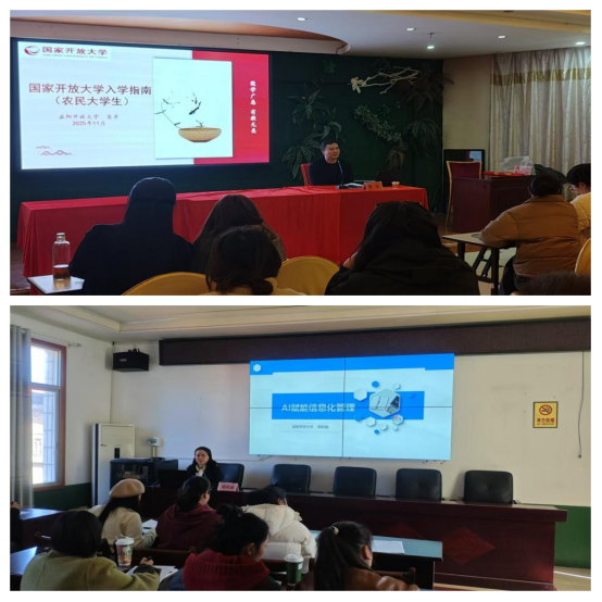 全市2025级农民大学生新生开学典礼首先在安化开放大学开始,最终在南县开放大学圆满结束,历时半个多月。在每一个区县(市)开放大学开学典礼上,刘燕副校长、当地县区(市)委组织部和教育局领导都作了讲话,提出了要求,寄予了厚望,学生代表作了表态发言。送课教师集中讲授了国家开放大学入学指南、网上学习平台操作技能、AI赋能信息化管理等实用课程,并进行了现场实操。