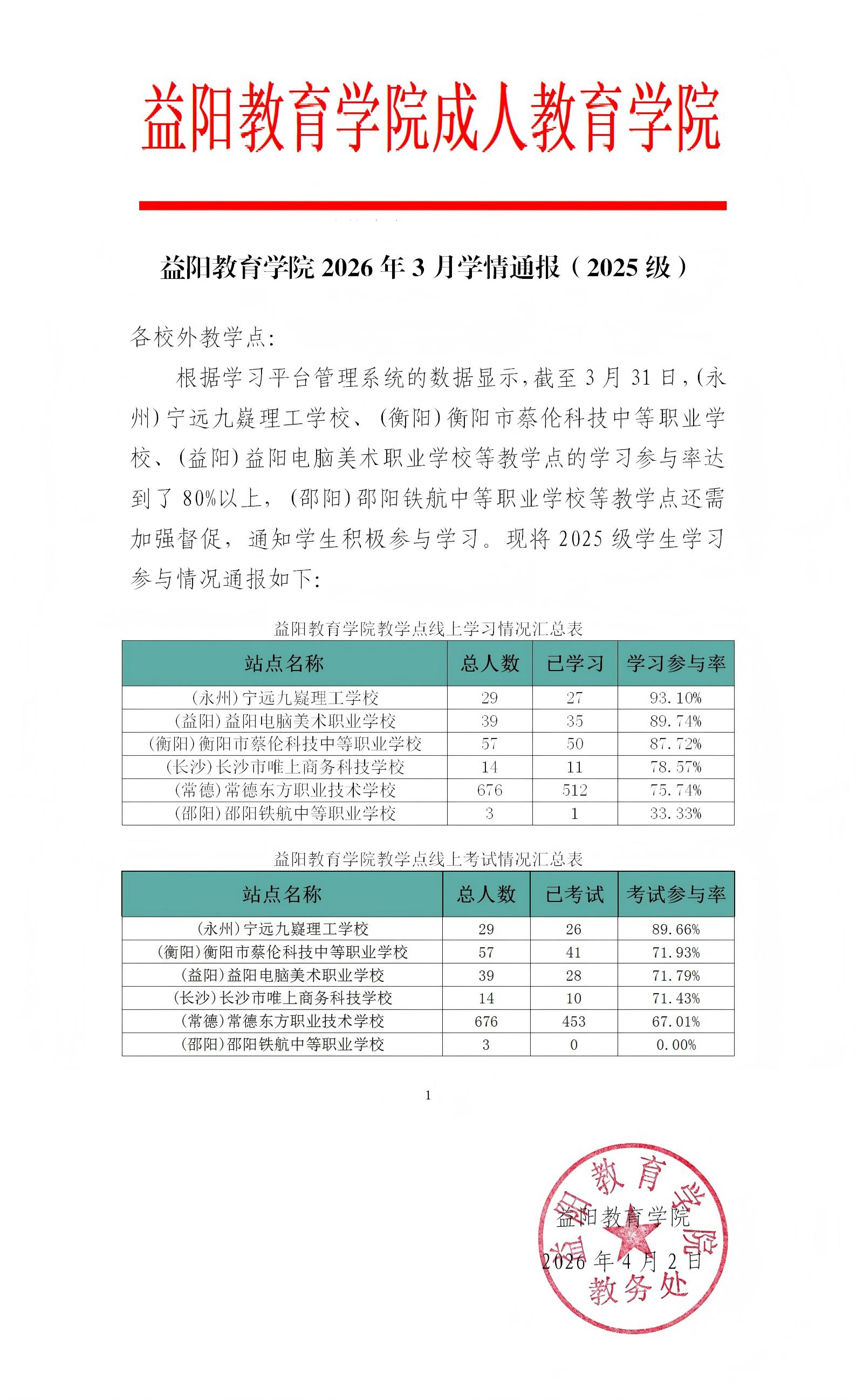 益阳教育学院2026年3月学情通报(2025级)